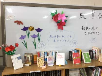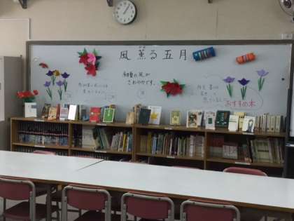 「学校図書館補助員」の西本亜樹子さんに、風薫る5月にディスプレイされた図書館が、あなたを待っています。ぜひ学びに来てください。