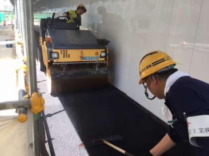 昨日に引き続き、5月11日(金)もアスファルト舗装工事が行われました。