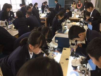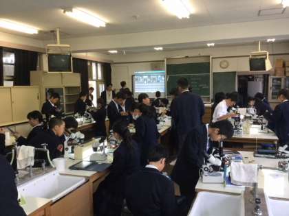 保護者の方も顕微鏡を覗かれていました。ICT機器の良さが発揮できる授業でした。