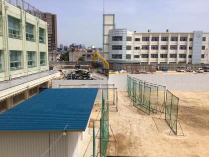 今回の塀の位置の移動で、一つの工事現場となりました。現在の塀の配置が、今後来年の8月まで続くことになります。