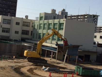 塀に囲まれた一つの工事現場になった土曜日の午後から、いままでの重機より一回り大きくパワフルな重機が登城しました。
