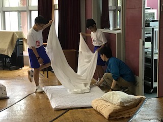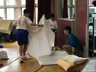 布団の畳み方の研修で、 施設の方より「誰か手伝ってくれる人いませんか」に対してすっと手が上がりました。