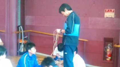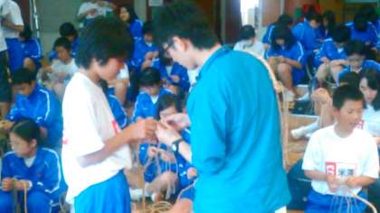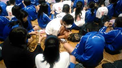 オリエンテーションは、中止となり、雨天のプログラムを実施しました。まずは、4組〜7組は、引き続き、オリエンテーションボールで、クラフトワークを行いました。