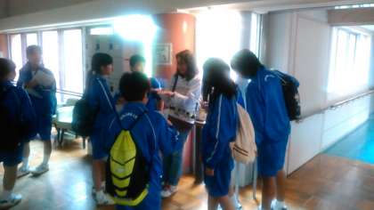 1組〜3組は、館内オリエンテーリングを実施しました。さあ、先生方とどんな話をしているのでしょうか?
