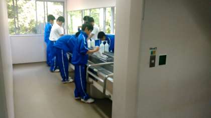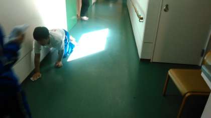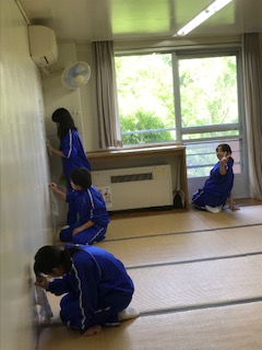 「来たときよりも美しく!」を目標に、全員が雑巾片手に一生懸命そうじをしています。