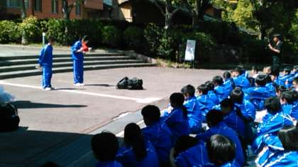 2時に退所式を行いました。少年自然の家のスタッフにお礼を言い、温かい言葉をいただきました。2日間、付き添っていただいた、オオサカスタジオのお二人にもお礼を言いました。