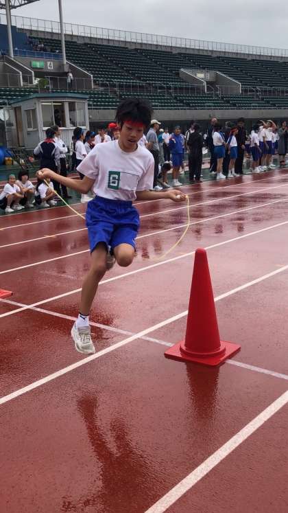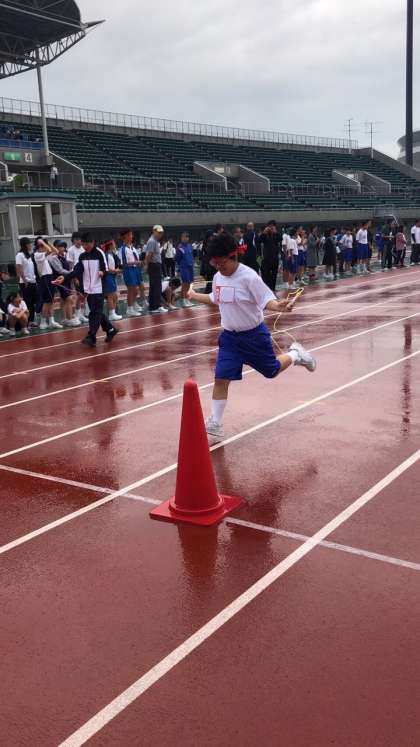 なわとび走ではきれいなフォームで走っています。コーナリングもバッチリです。