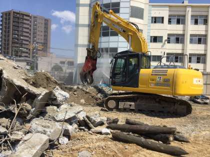 裏門近くでゴミお置き場の解体がおわり、地面の地ならし作業が行われていました。