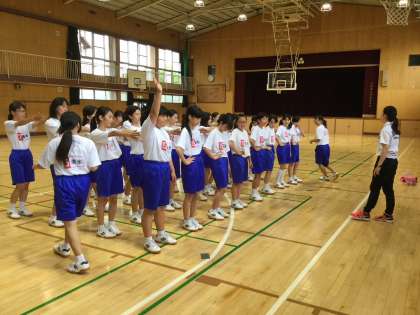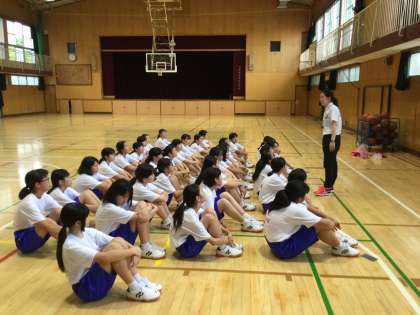 3時間目に1年5組6組の女子生徒を対象にした、教育実習生による体育科の研究授業が体育館でありました。