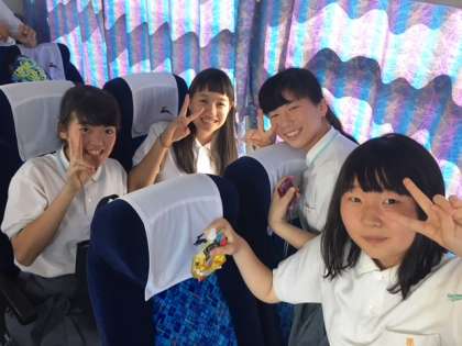 5組のバスの様子です。トランプやUNOで楽しんでます!