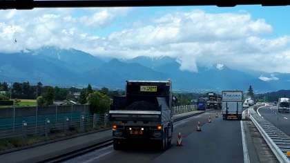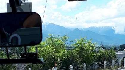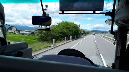 梓川サービスエリアを出発しました。残雪が見えてきました。