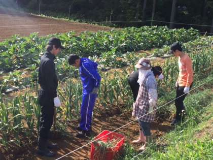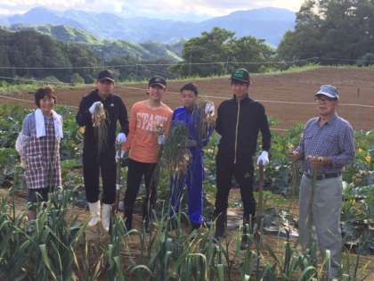 8組の生徒が、ラッキョウ、にんにくなどの収穫をさせてもらっています。