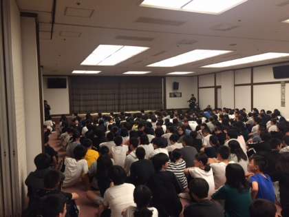いままで2つの班に分かれて行動していましたが、ここで合体してひとまとまりになりました。お楽しみの全体レクレーションの始まりです。