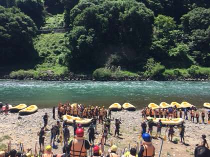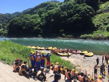各クラスラフティング会場にてインストラクターの方から説明を受けています。