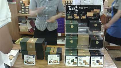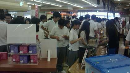 カステラやチャンポンを買いました。レジには長蛇の列です。