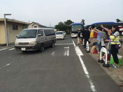 各家庭の車で、それぞれの家に向かう生徒達を、見送りました。