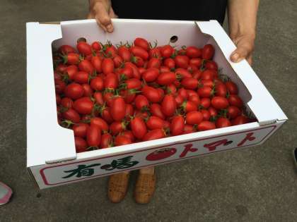 その前に、もぎたてのミディトマト、アイコをいただきました。