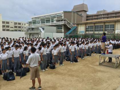 朝の地震に対して、第1グランドに避難し安全確認をしました。