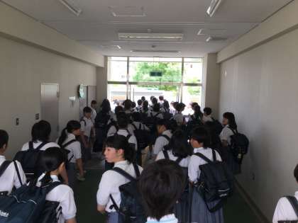 本日午前7時58分に発生しました地震につきまして、安否確認のため、欠席者の確認および家庭訪問を実施しました。給食の準備出来次第、弁当持参生徒とともに昼食をすませて、12時10分過ぎに下校しました。