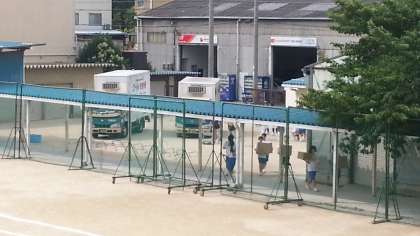 部活動の子どもたちに手伝ってもらい搬入中♪