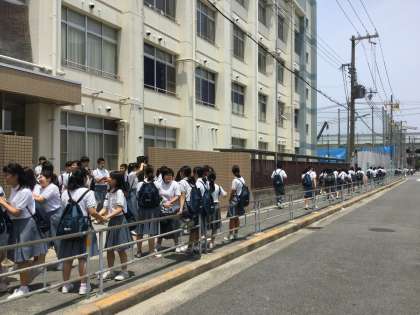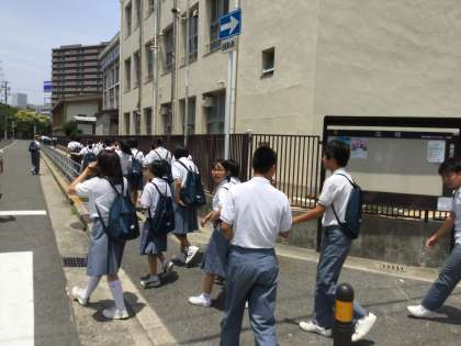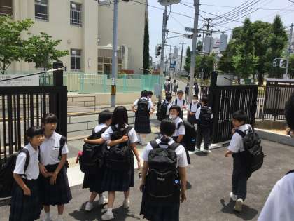 3時間目が終わってすぐの下校となり、12時頃には1号門・2号門から生徒達は帰っていきました。今日のテストを振り返りながらも、明日のテストに向けて頑張ってください。