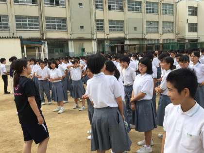 1年生同様、整列後委員長が点呼をして担任の先生に報告をしていきました。安全確認後にはクラス単位で腰を下ろしていきました。
