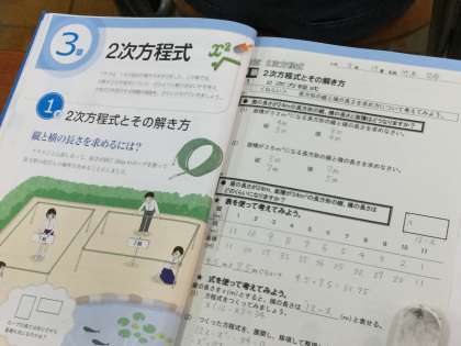 3年8組の理科数学の研究授業では、2次方程式の必要性を理解する授業でした。
