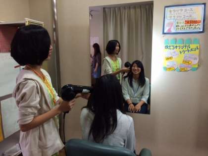 お互いの髪で練習中
