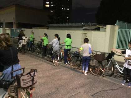 また会議終了後の20時からの校外巡視では、PTA実行委員さん、校外指導員さん、青少年指導員さんとともに中学校の教職員が、5小学校区に分かれて危険個所を中心にした巡視です。今回は真夏のような高温下、徒歩であるいは自転車で活動していただました。