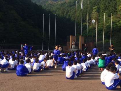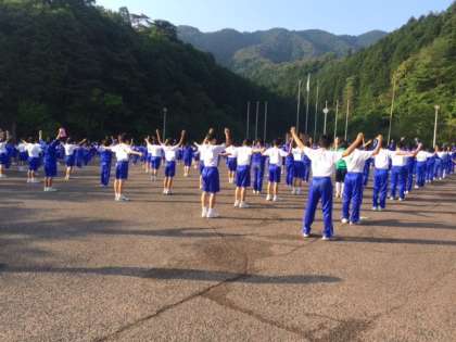 6時30分の集合に遅れることなく、朝のつどいが始まりました。昨日は登山と室内オリンピックで疲れたせいか、みんな朝までぐっすりでした。