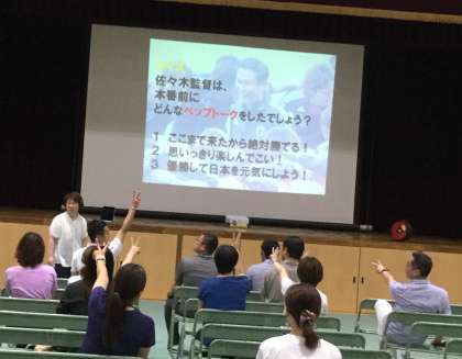 井上さんはハンドボール選手の経験から、自身の経験を踏まえて、そして参加者の身近な話題を提供して語りかけ、フレンドリーな雰囲気でわかりやすく説明していただきました。