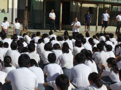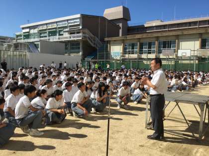 信号無視をしない。授業に向けて早めの移動をするように。人の嫌がることをしない。部活動の試合の応援に行くときのマナーとして、制服着用、スマホ等はもっていかない、デジカメで写真を撮らないように。と話されました。