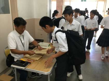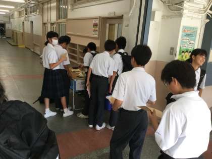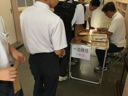 7月12日(木)の登校時に3号館1階の廊下で、1年生の一泊移住写真の申込受付がありました。