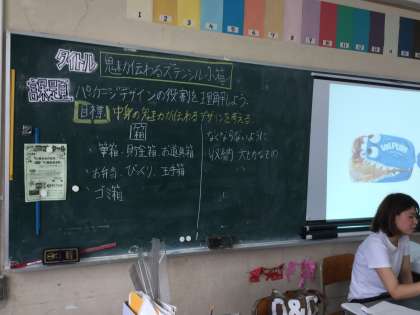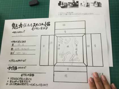 各自ワークシートの項目を埋めながら、小箱の展開図にデザインを描いていました。今後どんな素晴らしいデザインの、小箱ができるのか楽しみです。