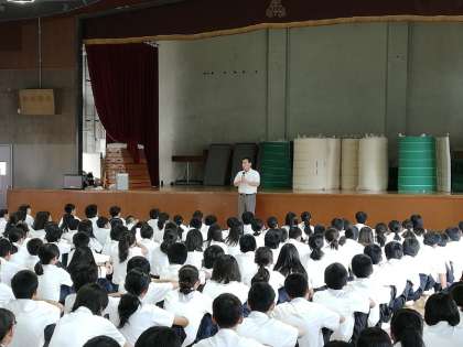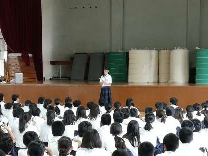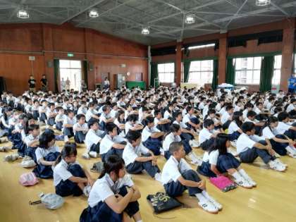1年生の学年集会は、1時間目に講堂で行われました。