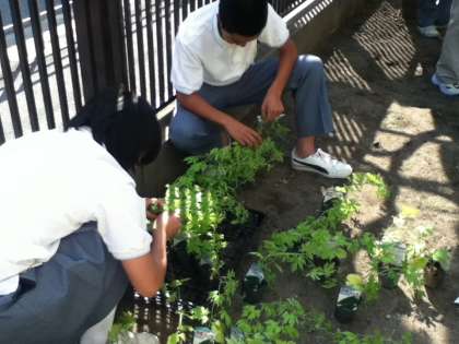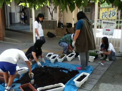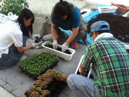 写真3枚目は壁面緑化用のゴーヤの苗を
