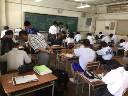 授業には学校元気アップ事業の「学習支援ボランティア」さんにも入っていただき、生徒の質問や説明等の個別対応をしていただきました。