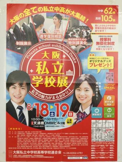 また、「大阪私立学校展」が8月18日(土)19日(日)の10時〜17時には、天満橋のOMMビル2階にてで開催されます。