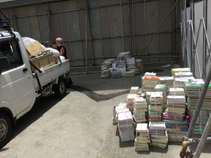 古紙回収業者の方が来られて、積込み・搬出作業が行われました。猛暑の中軽トラックで何度も往復していただきました。