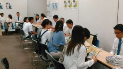いろいろな高校のブースがあり、友達どうしで来場する生徒、保護者と共に来場する生徒、保護者のみの場合などさまざまでしたが、高校の担当者に、積極的に質問をしていました。
