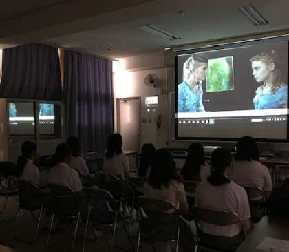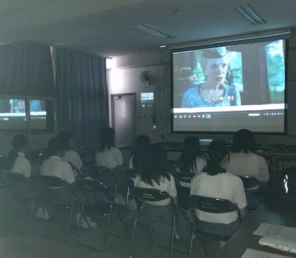 8月8日(水)にミーティング室で、英語部員がDVDの映画鑑賞をしていました。タイトルは「不思議の国のアリス」で、日本語の字幕付きの英語の映画でした。