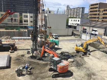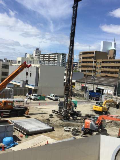 工事現場からはいろんな工事作業音が聞こえ、活気が満ち溢れていました。