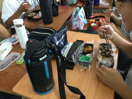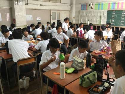 自宅からの持参弁当の生徒も多く、和気あいあいとした楽しい昼食の時間でした。