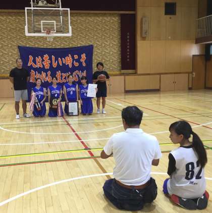 体育館では女子バスケットボール部の撮影です。「人は苦しい時こそ磨かれる技とは心なり」本当に奥深い尊い言葉ですね。トロフィーや賞状にこの言葉が潜んでいるようですね。