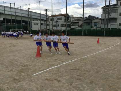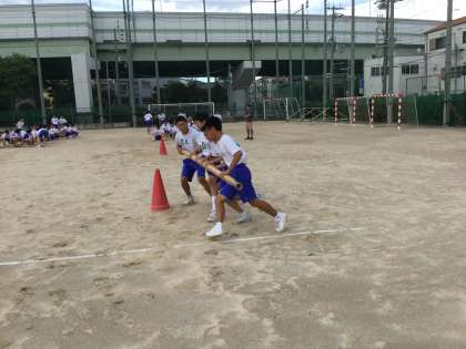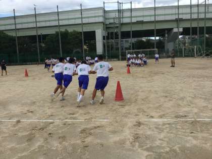 6時間目に行われていた、第2グラウンドでの体育科の授業の様子です。2年生の授業で、体育大会で行われる学年競技の練習を行っていました。額に汗して精一杯仲間と走りこんでいました。