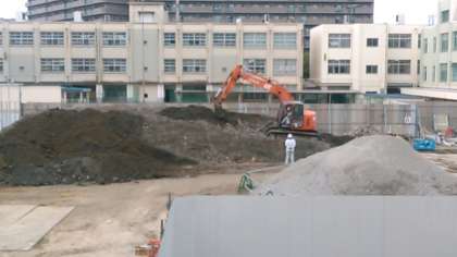 今日も、掘削工事が続いています。今日は、1号館寄りの掘削でした。