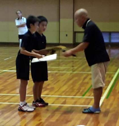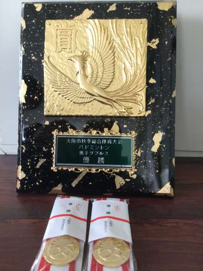 大阪市中学校秋季総合体育大会のバドミントン男子の部ダブルスで優勝