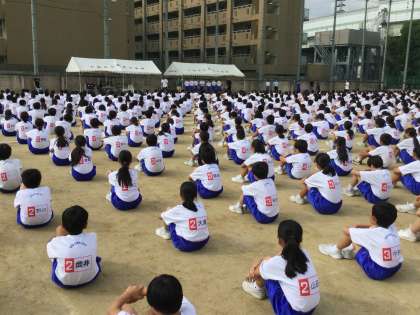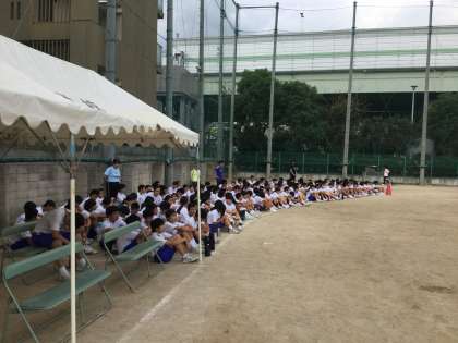 閉会式の練習では、座席から集合整列する練習があり、号令に従って走っていきました。今日の全体練習では全体の流れを学ぶ練習でした。