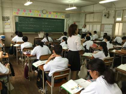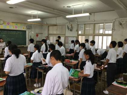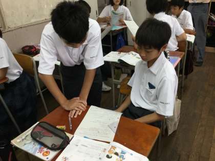教科書の文章を暗記して、二人一組のペアになり暗記文の確認をしていました。(真ん中の写真)