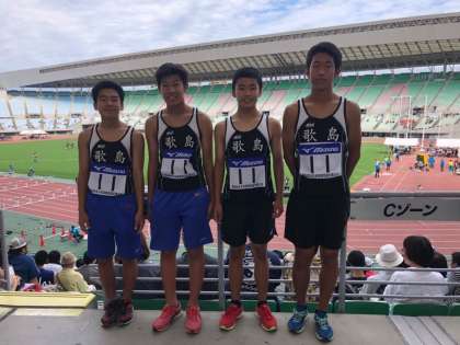このイベントが9月23日(日)に行われ、歌島中学校陸上部員が、男子4X100mリレー(1走水口・2走稲川・3走大路・4走前田)に選ばれ出場しました。